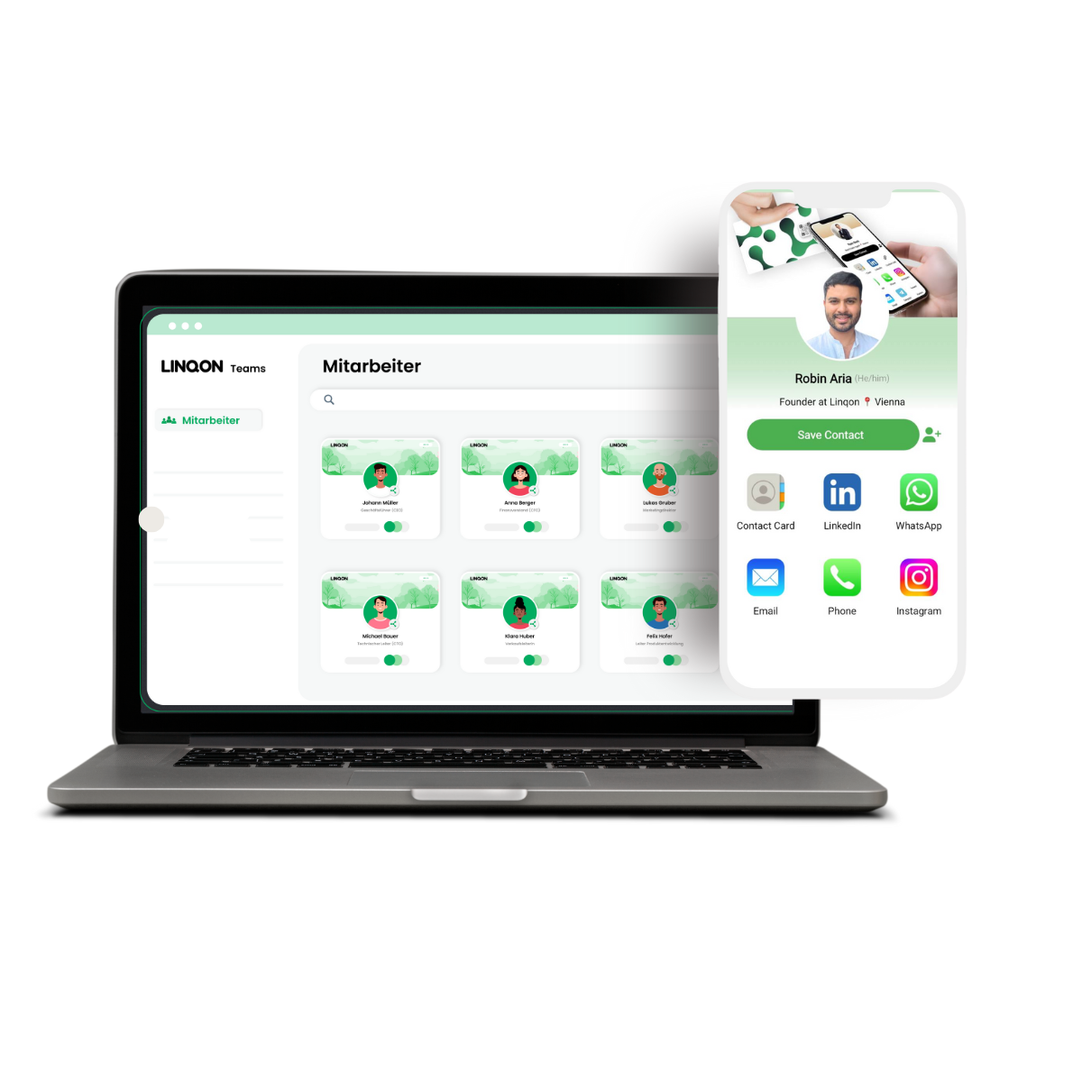 Eine Linqon Visitenkarte ist eine digitale Version einer herkömmlichen Visitenkarte aus Papier. Anstatt physische Karten auszutauschen, können Sie ihre Kontaktinformationen mithilfe verschiedener Technologien digital teilen.